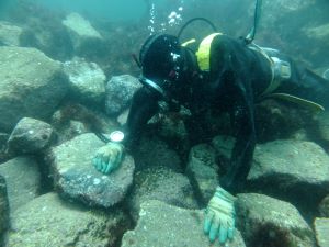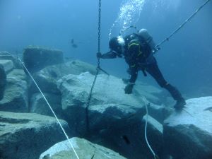 港湾や海岸などに関する土木工事において、水中箇所を潜水士が施工します。