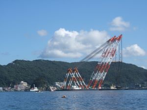 捨石の洗堀・流出防止の為の根固ブロックや波の力を弱める消波ブロックなど様々なブロックがあり、潜水士の指示・誘導によりこれらのブロックを設置して行きます。